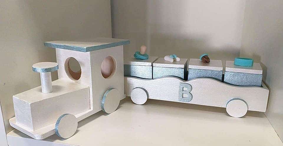 Comboio com Quatro Caixinhas, para colocar a 1ª Chuchinha, 1º Dentinho, 1ºCabelinho e a Pulseirinha.