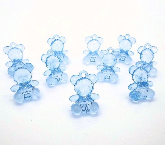 Pack de 10 Miniaturas Ursinhos em Plastico, Azul Bebé