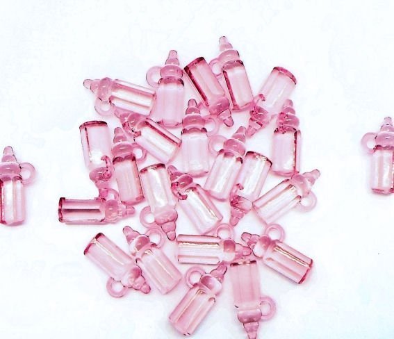 Pack de 24 Miniaturas de Biberons em Plastico, cor Rosa Bebé