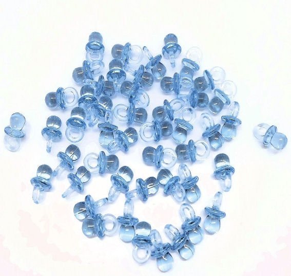Pack de 48 Miniaturas de Mini-Chupetas em Plastico, Azul Bebé