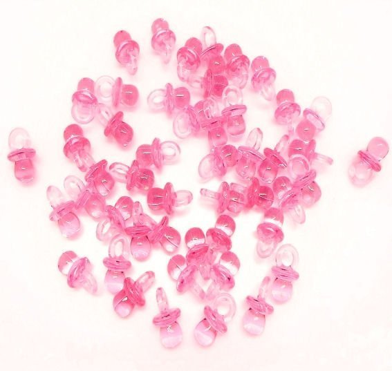 Pack de 48 Miniaturas de Mini-Chupetas em Plastico, Rosa Bebé