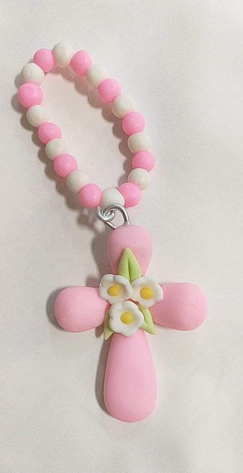 Terço Rosa em Biscuit, para oferecer aos convidados do Batizado do seu Bebé ou enfeitar as caixinhas de Batizado